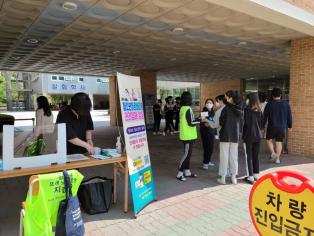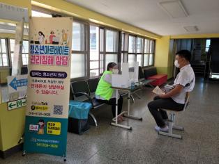 - 여름방학을 마치고 2학기 학교로 찾아가는 아르바이트 부당사례 상담을 진행하였습니다. 개학 일정으로 인해 3개 학교 “온양고, 용화고, 한올고”에서 점심시간을 이용하여 청소년노동인권 보호와 아르바이트 권리침해 상담과 안내 홍보물 전달을 하였습니다. 각 학교 담당 청소년지킴이 선생님과 2021년 새로이 양성된 또래지킴이들과 2,3학년 또래지킴이들이 수고해 주었습니다. 처음으로 1학년부터 3학년을 만날 수 있어 좋았습니다. 아르바이트를 하지 않아도 평소 궁금한 점을 물어보거나 주위 친구 사정을 대신 상담하는 모습이 훈훈했습니다. 9월에는 코로나가 진정되어 더 편하게 학생들을 만나고 상담할 수 있으면 하는 바람입니다. 비오는 날에도 함께 수고해 주신 지킴이선생님과 또래지킴이들에게 모두 감사합니다.