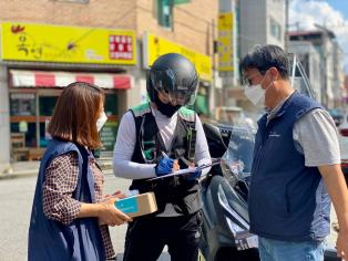 - 코로나19 재산시기에도 감염위험에도 불구하고, 평일기준 하루 평균 9시간이상 노동과 주문과 주문사이 하루 평균 4시간가까이 대기하며 시민들의 안전하고 평범한 일상을 위해 일하고 있는 배달노동자들이 있습니다. 이들은 ‘특수형태근로종사자’라는 법적분류로 노동자이면서 사회안전망 밖에 있어 제도적 보호를 받지 못하고 있는 노동자들입니다. 지난 해 아산시비정규직지원센터(이하 ‘센터’)와 충남지역비정규직센터가 우리지역(충남) 배달노동자 노동환경실태를 조사한 결과, 배달노동자의 44%가 지난 1년간 배달 중 사고를 경험 있음에도 불구하고 엄청난 보험료부담에 보험조차 가입하지 못하는 경우가 10.1%나 되는 것으로 나타났다. 이렇게 사고 경험이 높은데도 불구하고, 사고 시 치료와 직접 연계된 산업재해보상보험에 가입하지 않은 경우는 67.1%나 되는 것으로 나타났습니다. 센터와 지역노동센터는 배달노동자의 권리보호를 위해 9월 3일(금) 배방에 위치한 공원 앞에서 “배달노동자 권리 잇-다”라는 주제로 배달노동자를 위한 캠페인을 진행하고 배달노동자들과 안전용품도 나눴습니다. 이날 행사에는 지나시는 시민 분들도 참여하셔서 배달노동자들의 건강과 안전, 권리찾기‘를 응원해 주셨습니다. “배달노동자 권리 잇-다” 캠페인은 9월 8일(수) 천안(원두정 먹거리 공원), 9월 10일(금) 당진(KT 당진지사 앞)에서 14:00부터 계속 진행됩니다. 시민 분들의 많은 관심과 응원을 부탁드리며, 배달노동자의 안전을 주문해 주세요!