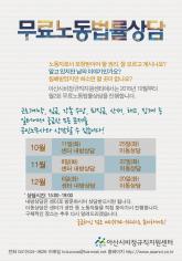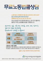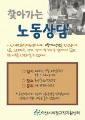 - 아산시비정규직지원센터에서는 중소영세사업장, 비정규직노동자를 위한 무료노동법률 상담을 진행하고 있습니다. 이번에는 비정규직 노동자들과 시민들에게 좀 더 다가가는 서비스를 위해 '무료 이동노동법률상담'을 진행하게 되었습니다. '임금, 각종수당, 퇴직금 문제, 근로계약, 징계, 해고, 산재' 등 일터에서 발생하는 각종 노동사안에 대해 '공인노무사'가 "무료"로 상담하고 지원해 드립니다. 중소영세사업장 노동자, 비정규직노동자, 아산시민이나 노동자면 누구나 상담가능하며, 기타 자세한 사항은 첨부된 포스터(웹자보)를 참고하시기 바랍니다. 노동자로서 당연히 보장받아야 할 권리 잘 모리고 계시나요? 알고 있지만 남의 이야기인가요? 침해 받았지만 어디에 하소연 할 곳이 없나요? "아산시비정규직 지원센터"가 함께 합니다.