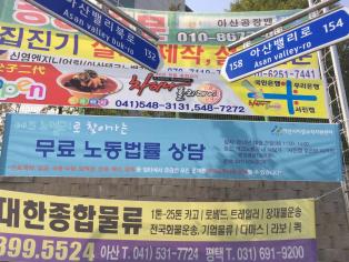 - 아산시비정규직지원센터에서는 지난 9월 27일 15:00 ~ 19:00까지 온양온천역에서 '무료 이동법률상담'을 진행하였습니다. 이날은 비정규직 노동자들께서 주로 상담해 오셨고, 주된 상담내용은 임금체불과 퇴직금에 관한사항이었습니다. 센터는 '무료 이동노동법률상담'을 시작으로 공인노무사와 무료로 상담 할 수 있는 '무료 노동법률 상담'을 계속 이어 진행합니다. '임금, 각종수당, 퇴직금 문제, 근로계약, 징계, 해고, 산재' 등 일터에서 발생하는 각종 노동사안에 대해 '공인노무사'가 "무료"로 상담하고 지원해 드립니다. 중소영세사업장 노동자, 비정규직노동자, 아산시민이나 노동자면 누구나 상담가능합니다.
