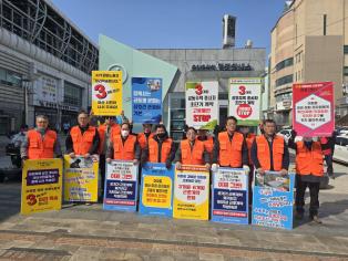 - 아산시비정규직지원센터(이하 ‘센터’)는 공동주택 경비노동자분들과 함께 3월 6일과 7일 ‘초단기근로계약 근절과 인권존중 캠페인’을 온양온천역광장에서 진행했습니다. 매년 반복해서 근로계약을 체결하지만 3개월은 수습기간이라는 이유로 3개월 근로계약, 나머지 9개월 근로계약도 1년미만으로 근로계약을 진행하고, 이제는 이것도 모자라 매번 3개월씩 나눠 근로계약서를 1년에 4번 작성하는 경우도 발생하고 있습니다. 또 용역업체가 바뀌면 언제 해고 될지 몰라 전전긍긍 할 수밖에 없는 것이 현실입니다. 비정규직이라는 이유로! 고령노동자라는 이유로! 이런 대우는 더 이상 못참겠다고 경비노동자들이 나섰습니다. 직접 피켓을 들고 부당함과 이를 시민들에게 알리고 함께하기 위해 캠페인을 진행했습니다.