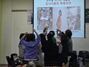 - 지난 4월 25일 저녁 7시~8시 ‘아산시 돌봄 노동자 동아리 모임’이 진행되었습니다. 작년 ‘숟가락 난타’에 이어 올해는 ‘양말목 공예와 레크레이션’ 모임을 준비했습니다. 요양보호사(센터, 주간보호, 재가)와 장애인 활동지원사 등 돌봄노동에 종사하는 분들이 모여 배움과 소통, 스트레스 해소를 통한 즐거움을 찾는 시간을 가졌습니다. 몸풀기로 신나는 노래와 율동에 이어 양말목 공예를 하였습니다. 기초과정으로 받침과 카네이션을 만들었습니다. 처음 접하는 거라 어색하기도 하고 서툴기도 하였지만 ‘어버이 날’ 어르신들에게 달아드리려는 맘으로 정성스럽게 만드시는 모습에 감명 받았습니다.. 동아리 모임은 매월 2째, 4째주 목요일 저녁 7시에 진행됩니다. 아산시 돌봄 노동에 종사하시는 분들의 노고에 감사드리며 오셔서 기쁨을 함께 나누는 시간이 되었으면 합니다.