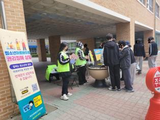 - 4월 2일부터 24일까지 아산시 9개 고등학교에서 ‘학교로 찾아가는 청소년 노동인권 상담’이 진행되었습니다. 2025년 시작되는 상담에는 센터 홍보를 위한 인식조사와 청소년들이 일하기 전 꼭 알아야 하는 기초 노동법에 대해 살펴보는 활동을 하였습니다. 점심시간을 이용한 아르바이트 부당사례상담은 청소년 지킴이 선생님들의 수고 및 학교의 협조와 함께 꾸준히 이어오고 있으며 많은 청소년들이 상담과 권리구제 그리고 평소 궁금해하던 점들을 알아가는 시간이 되고 있습니다. 또한, 아산시 청소년노동인권 또래지킴이 ‘청나비’들도 친구들에게 다가가 상담 안내와 홍보물을 전달하며 친구들의 권익보호에 한목소리를 내며 참여해 주고 있습니다. 학업과 일을 병행하는 아산시 청소년들의 안전하고 건강한 노동환경을 위해 노력하겠습니다.